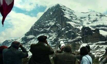 İsmini ürkütücü görüntüsünden olan Eiger (Ogre demektir), İsviçre Alpleri’nde 3970 metre yüksekliğinde bir dağ. Dağın 1800 metrelik kuzey yamacı aşağı vadide kuruyu 5 yıldızlı otellerden teleskop ve dürbünlerle rahatlıkla görülebilir. Zaten bu dağa tırmanmaya kalkan çılgın dağcıları izlemek bu otellerin müşterilerinin günlük eğlenceleri arasındadır. Clint Eastwood’un yönettiği ve rol aldığı 1975 yapımı film Zirvede Ölüm / The Eiger Sanction sayesinde sinema severler yakından tanır Eiger’i.